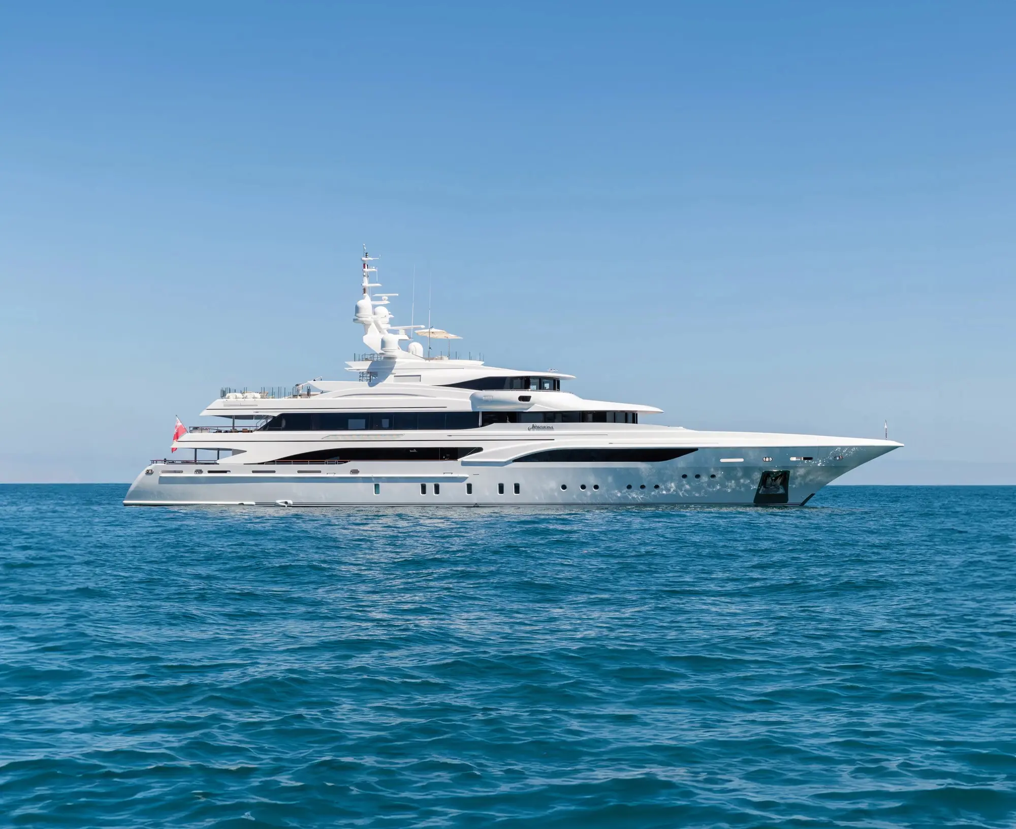 A classic 62m Codecasa with 1,002 GT of volume and a uniquely high-capacity layout, ESMERALDA accommodates up to 28 guests in 11 staterooms (private use), run by a crew of 19. Steel hull, aluminium superstructure, 6,000 nm range, and asking €14,000,000.