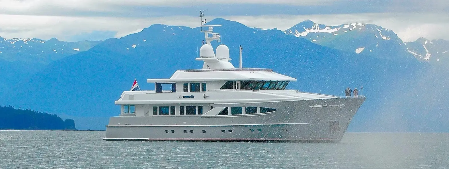 The 37.69m Heesen Alumercia features sturdy, purposeful looks and an efficient aluminium hull for economic and seaworthy performance. The yacht's design by Omega Architects offers sleek lines and comfortable outdoor spaces. There is accommodation for up to 10 guests including the master, VIP, twins and pullman births. All cabins have full en suite facilities. She features a sky lounge and an aft deck enclosed with glass panels that can be removed in warmer climates to create a large al fresco dining area. Propulsion comes from 480hp Caterpillar diesel engines giving her a massive range of 5,500 nautical miles at 10 knots.