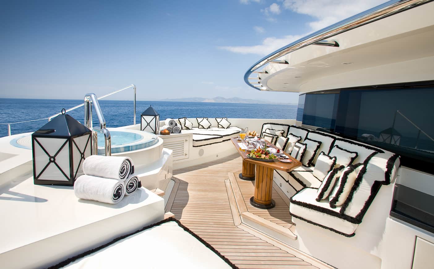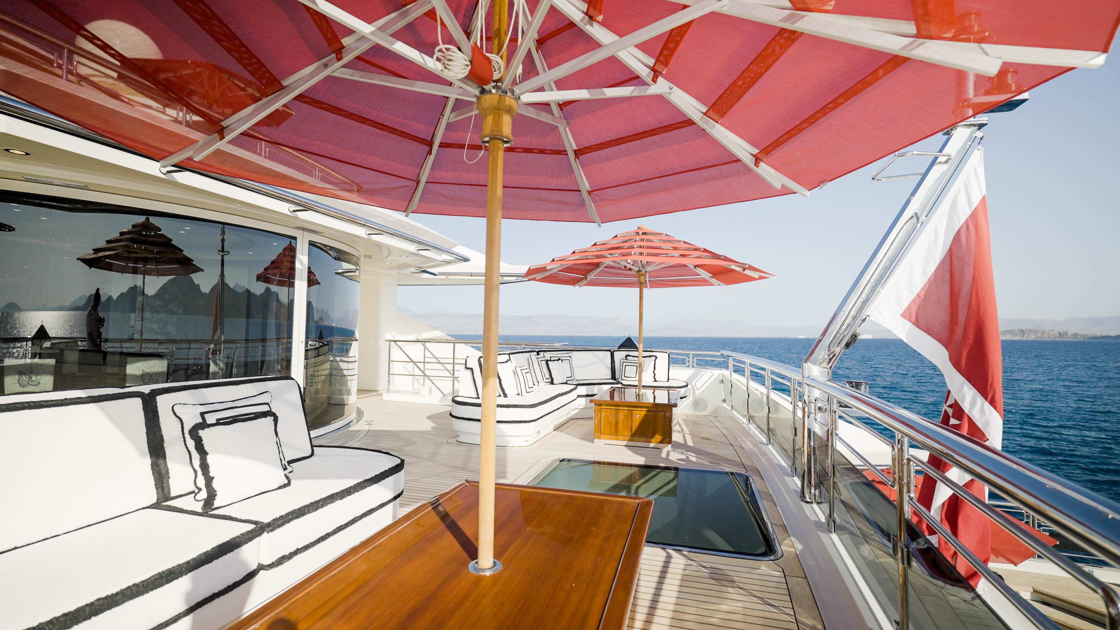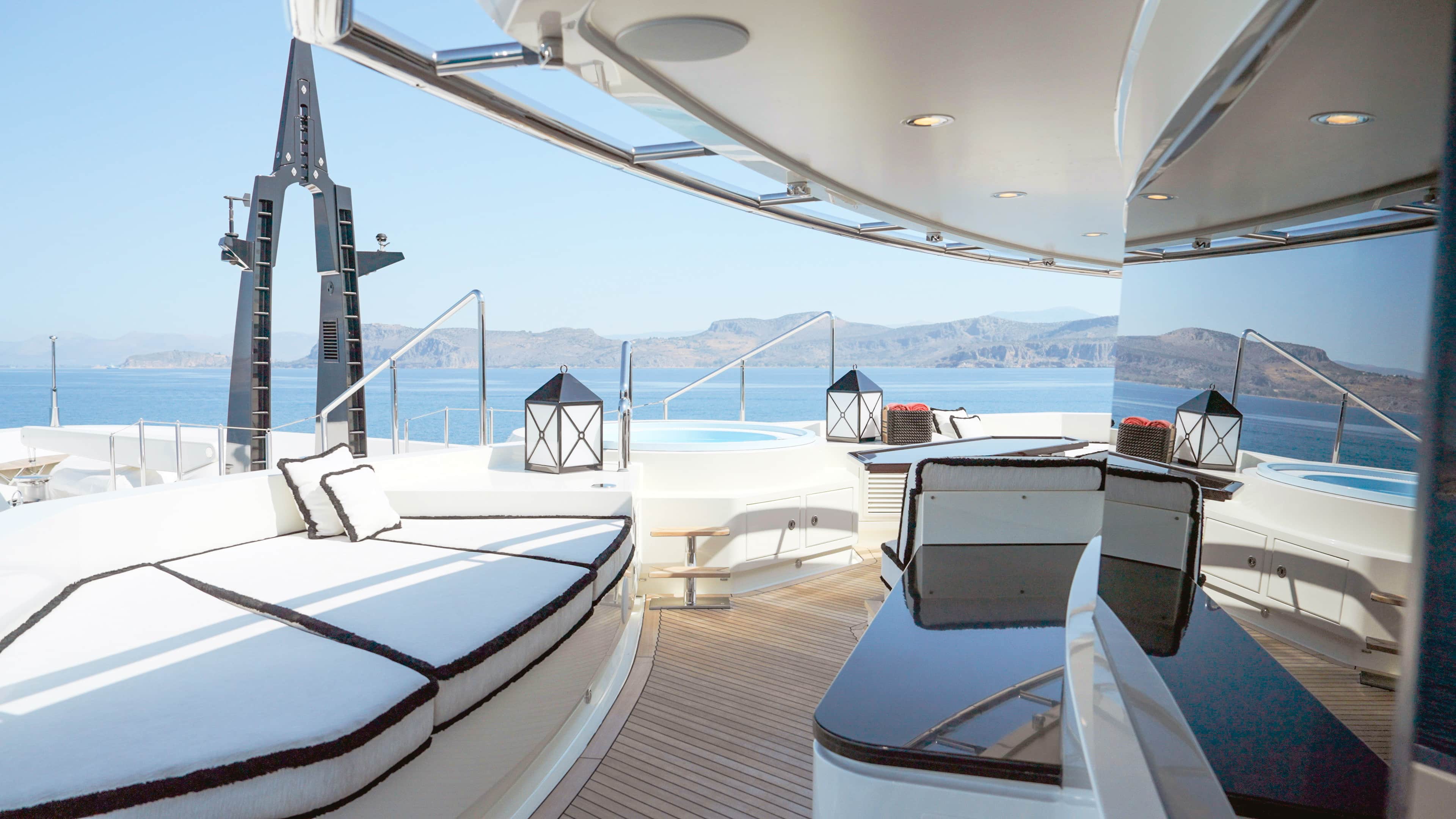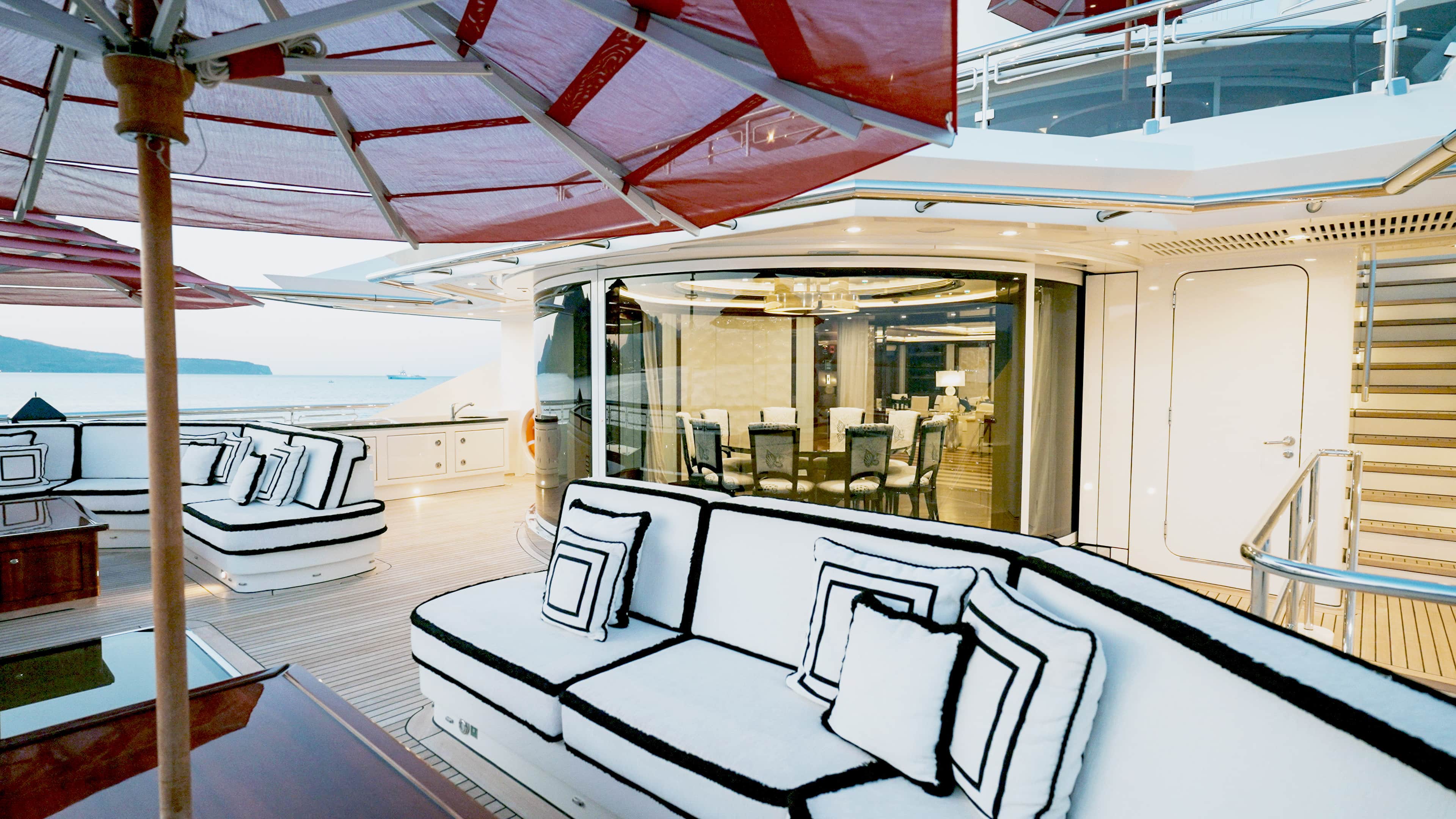Alfa Nero was designed to function as both a private residence and a large-scale entertainment platform. Her deck spaces are generous, open, and adaptable, allowing the yacht to shift effortlessly between relaxed private use and social occasions.