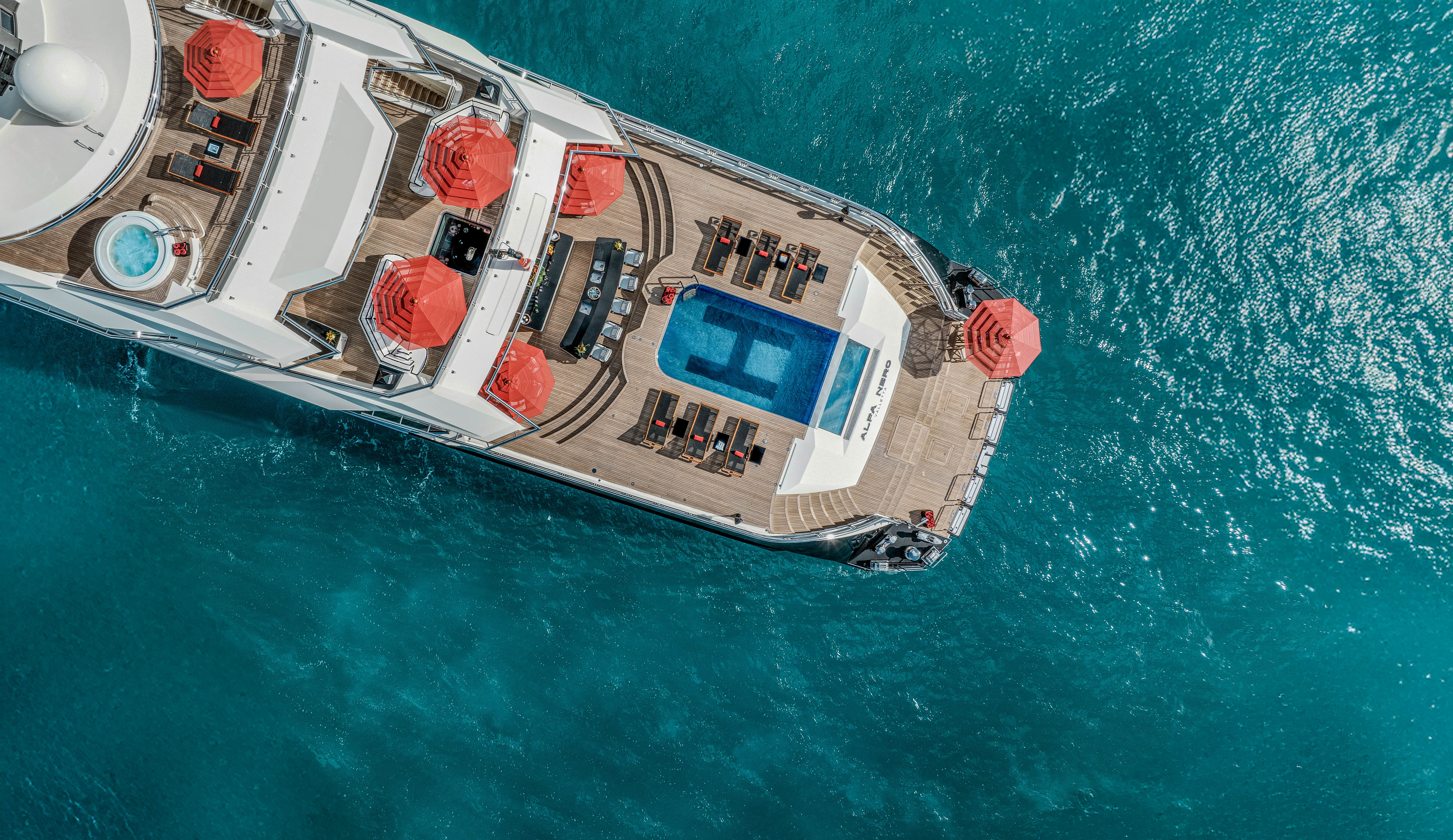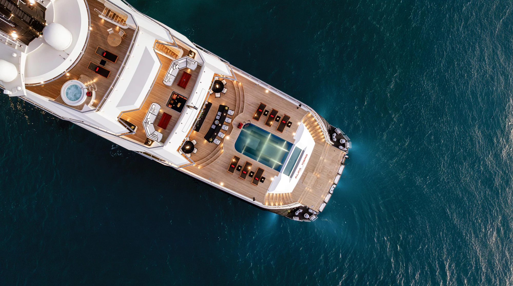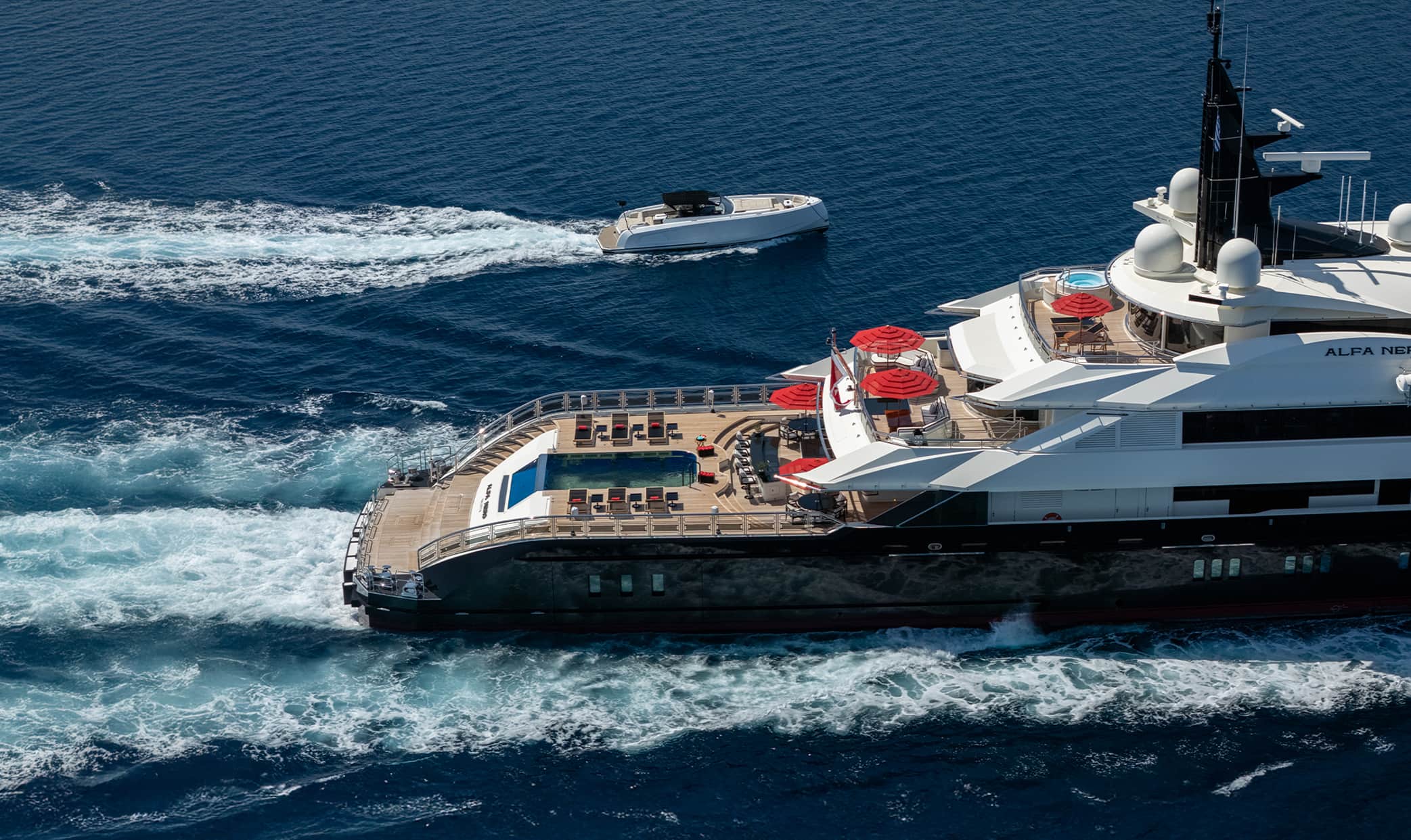 Alfa Nero is widely recognised as one of the most influential superyachts of her generation. At launch, she introduced design and spatial concepts — including her convertible aft deck pool and extended open deck layouts — that have since become industry benchmarks in the 80-metre class.