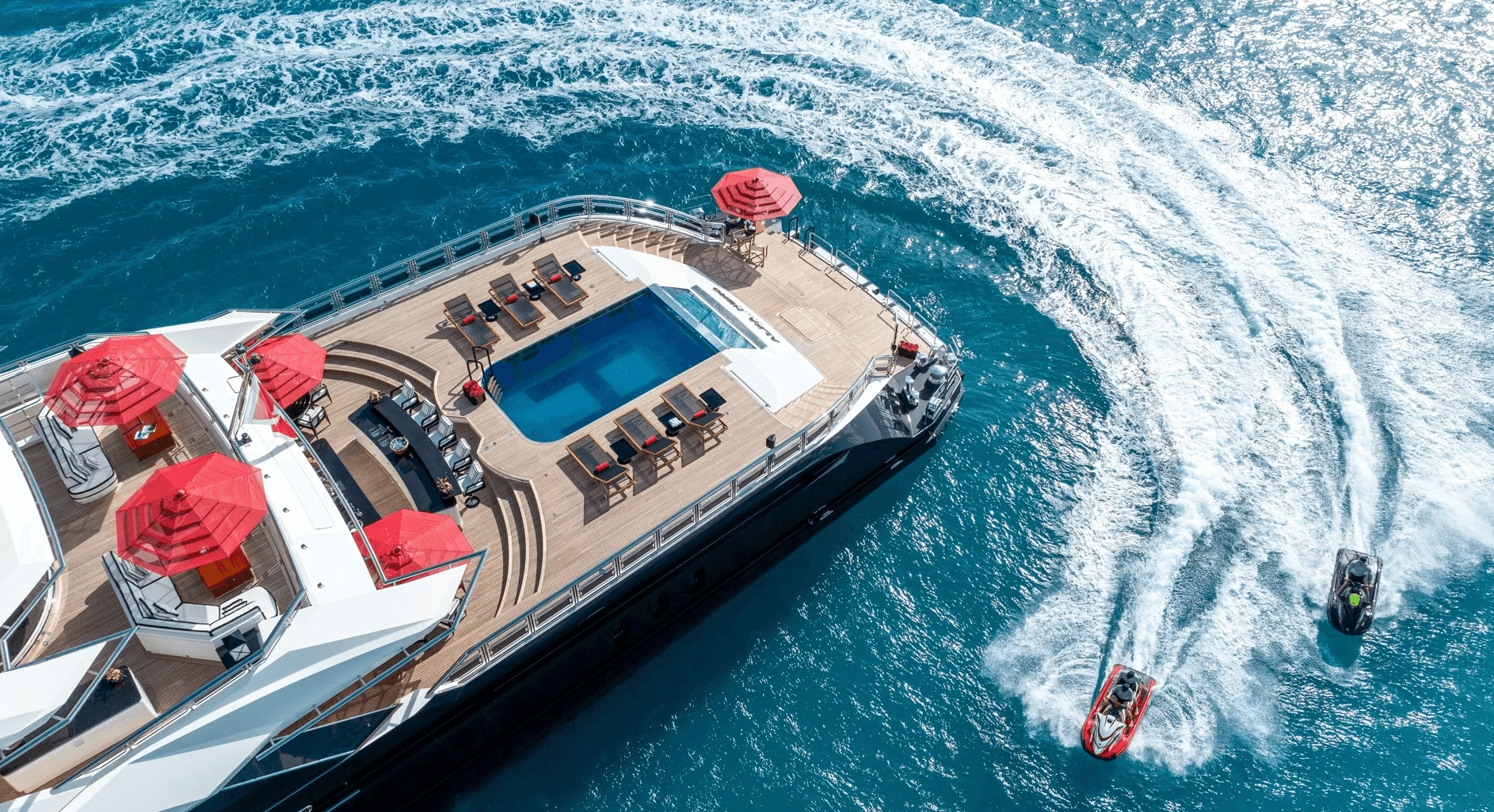 Her distinction lies in her influence. Alfa Nero is not simply well-built; she introduced concepts that reshaped large-yacht design. Her deck proportions, pool concept, and interior volumes remain reference points within the sector.