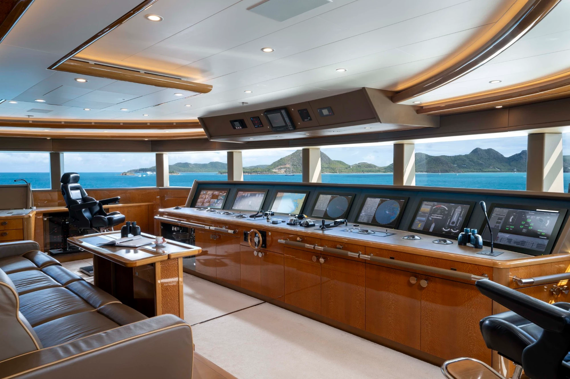 The 2024 refit focused on technical systems, navigation and AV upgrades, interior refresh works, and exterior refinishing. The objective was to preserve the yacht’s original design integrity while aligning her with current operational expectations.